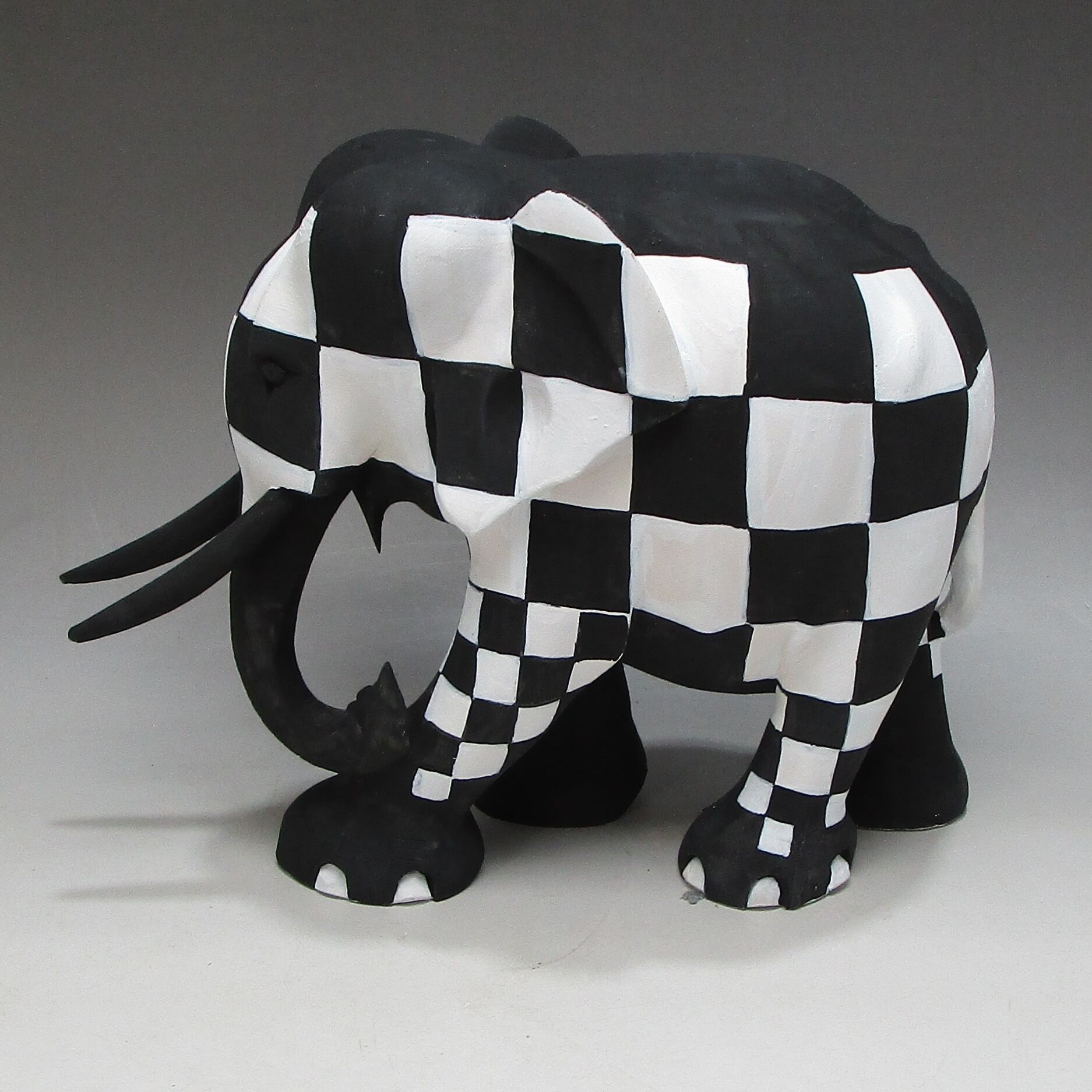 洗練された白黒のチェック柄が特徴のゾウの置物が、あなたのインテリアにスタイリッシュなアクセントを加えます!このリメイクされた木彫りのゾウは、見る人にモダンさとセンスの良さを提供し、どんな空間にも見事に調和します。特にアートを楽しむ空間やシックなデコレーションにぴったりのアイテムです。